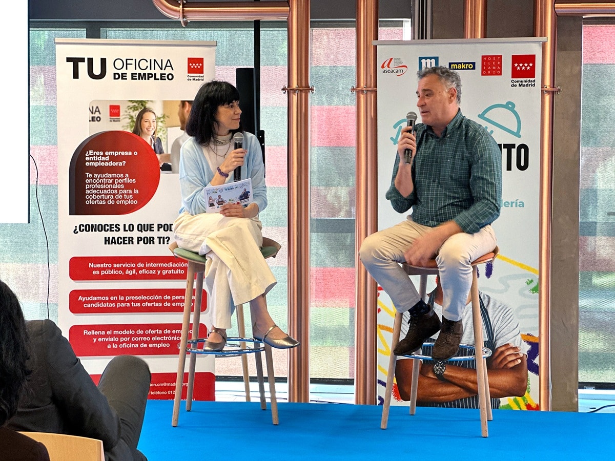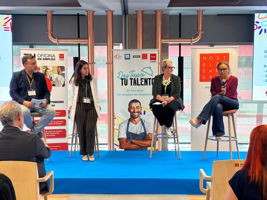 A continuación, se celebró una mesa redonda centrada en el área de cocina, dinamizada por Sara del Amo, directora de la Oficina de Empleo Atocha. En ella participaron Manuel Vázquez, adjunto a Dirección de Operaciones en Madrid de Angrup; Javier Martínez Martínez, técnico de Recursos Humanos de Lamucca; y Daniel Talavera, CEO y propietario de La Fábrica. Los ponentes abordaron las competencias más demandadas por los grupos de restauración, las oportunidades de crecimiento dentro de las empresas y la importancia de la actitud, el compromiso y las ganas de aprender.