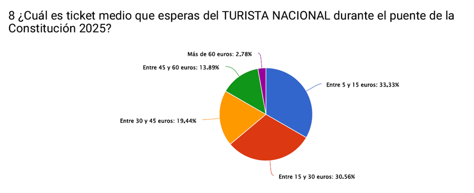 En comparación con el año pasado, el sector se muestra muy dividido: un 32% de los encuestados cree que el Puente de la Constitución 2025 será mejor que el de 2024, otro 32% piensa que será peor, mientras que un 35 % espera resultados similares.