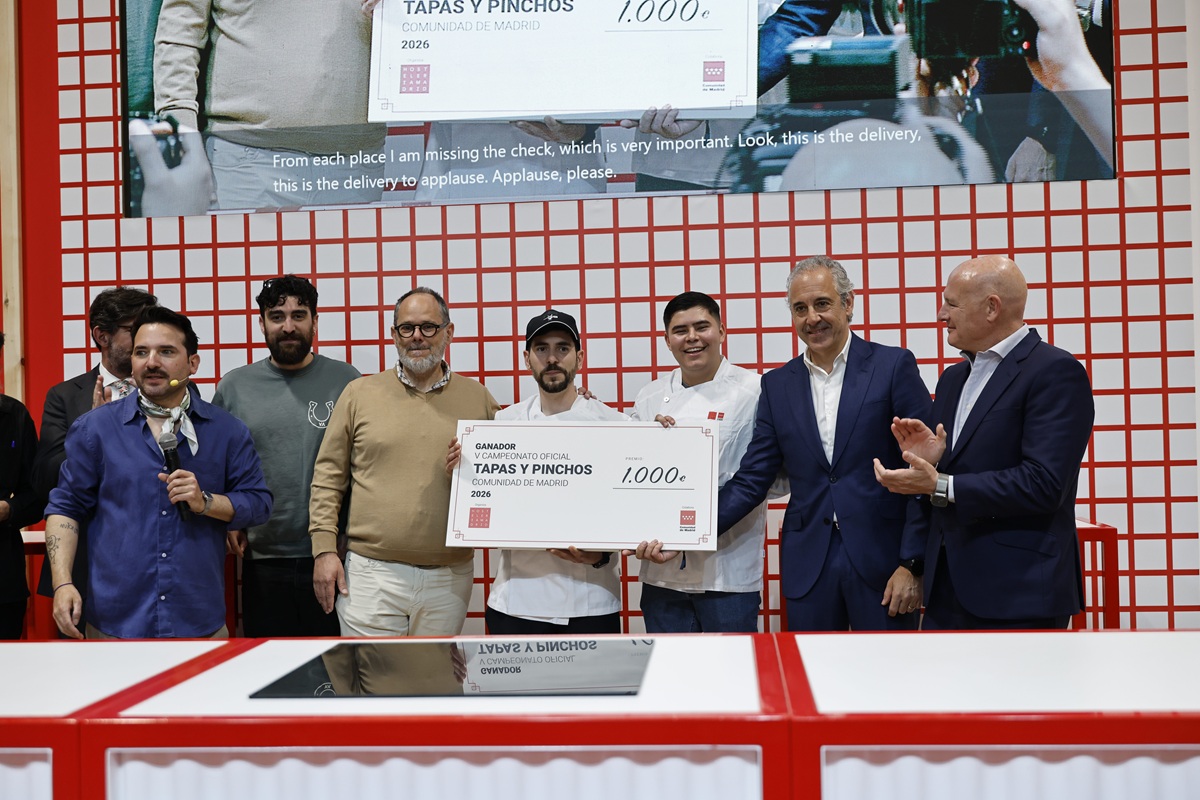 El ganador de la pasada edición, el restaurante Docamar y su tapa ‘El Domingo’, fue el encargado de pasar el testigo y entregar el cheque de 1.000 euros al ganador de esta edición, que representará a Madrid en el Campeonato Nacional de Tapas y Pinchos Madrid Fusión 2027.